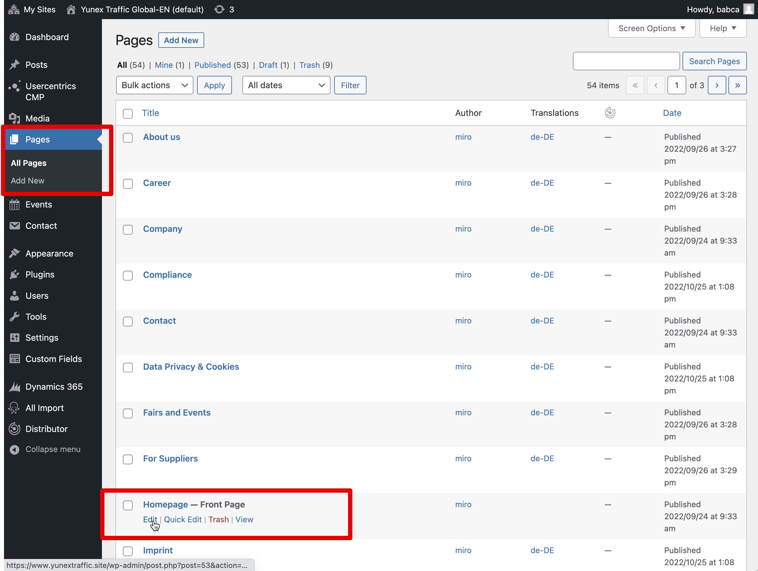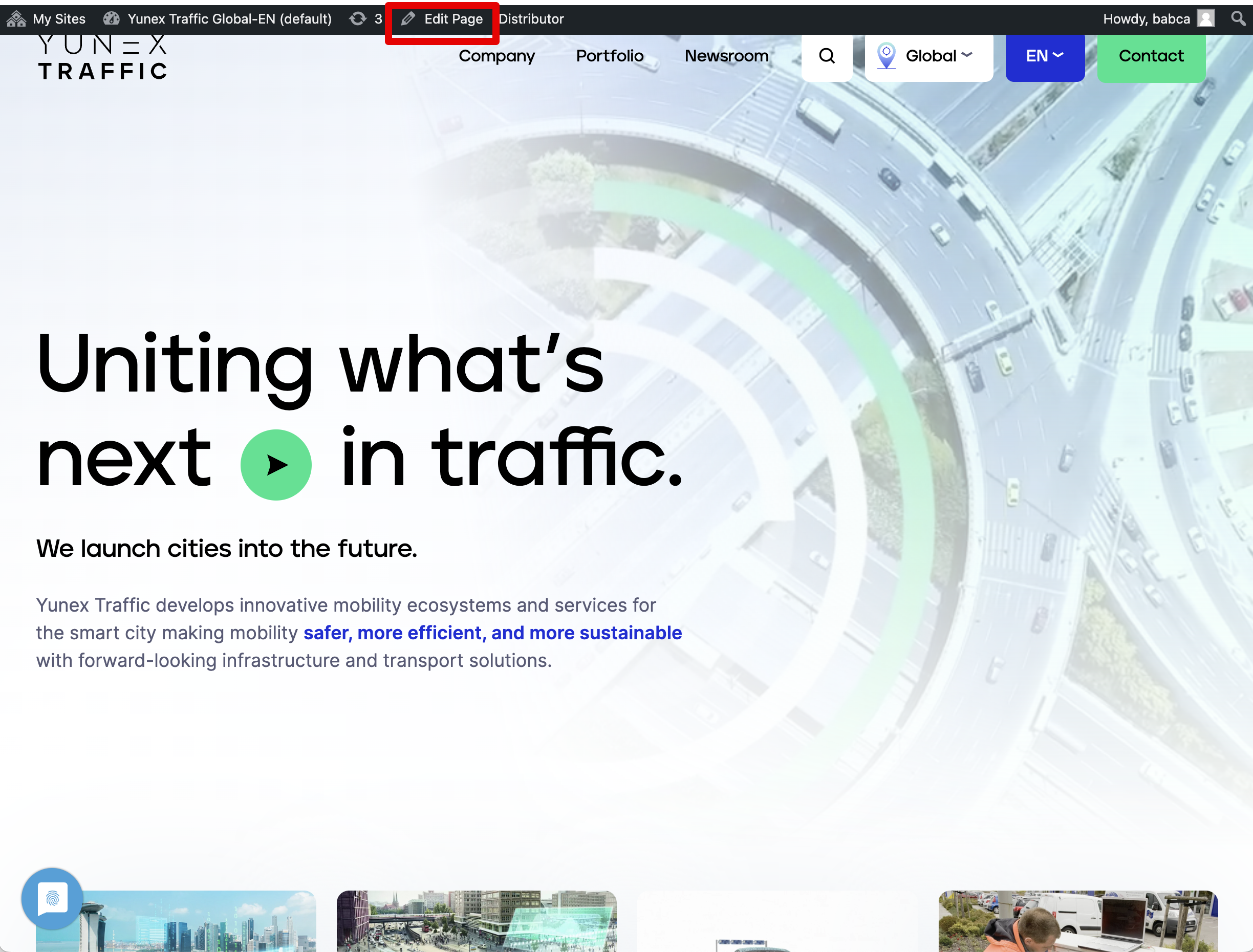 If you are browsing the website and you are logged in, simply open the page you want to edit and click Edit page on top to open the content editor.